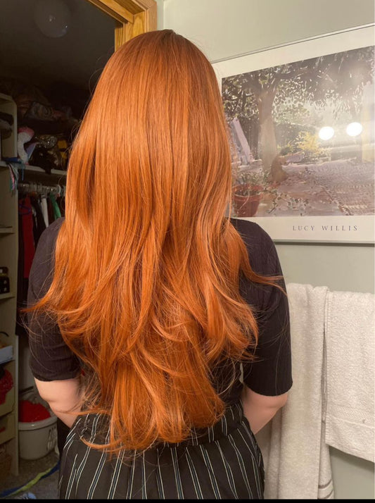 Beautiful long Wavy Curly Copper Auburn Red Orange Wig Natural Realistic