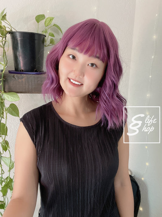 Beautiful Realistic Short Wavy Purple Wig Natural Realistic