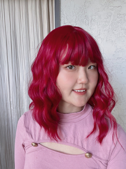 Beautiful Red Short Shoulder Length Wavy Curly Red Orange Wig Wine Burgundy Natural Realistic