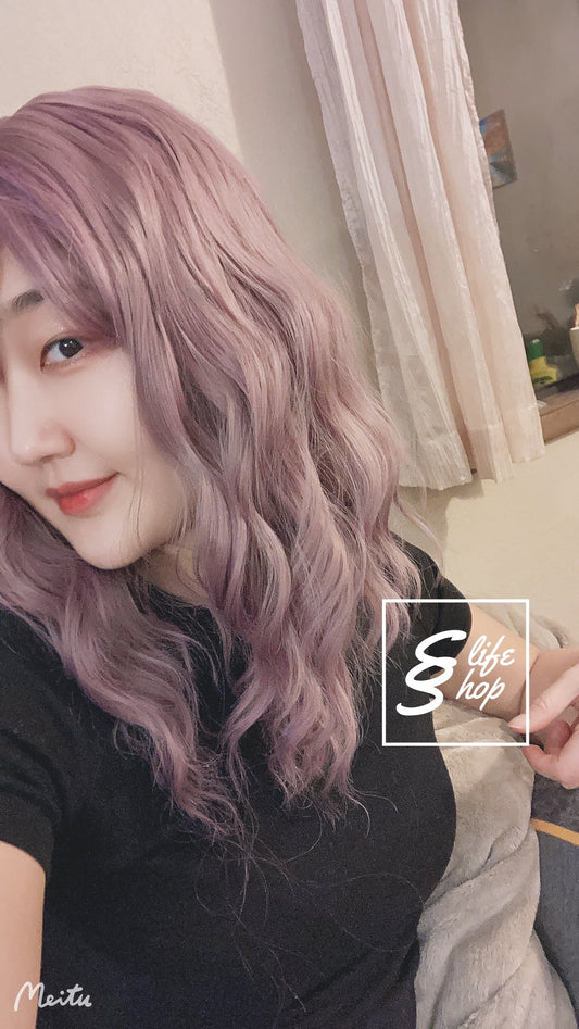 Beautiful Realistic Mid Length Short Wavy Purple Wig Natural Cute