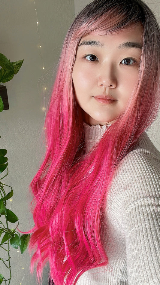 Beautiful Realistic Ombré Hot Pink Fuchsia Long Cute Curly Wavy Wig