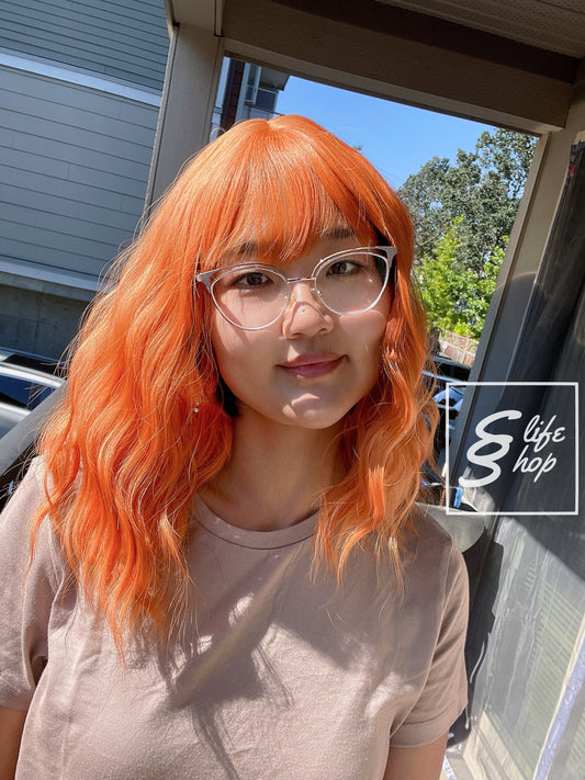 Beautiful Red Orange Wig Short Shoulder Length Wavy Curly Red Orange Wig Wine Burgundy Natural Realistic