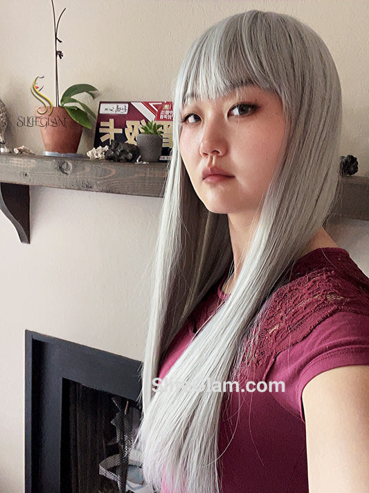 Cool Straight Long Silver Wig Cosplay Wig Drag Wig Halloween Wig Natural