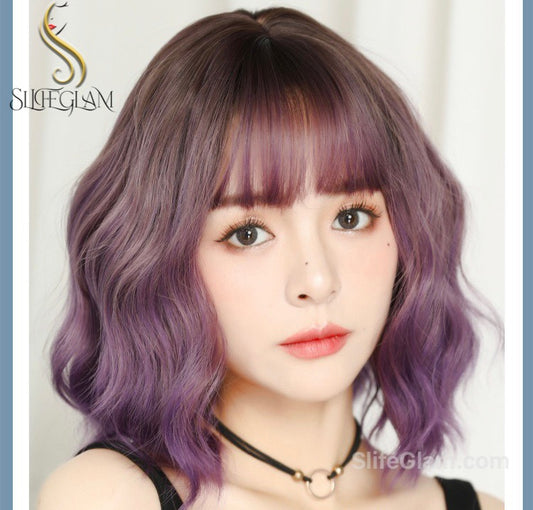 Cute Realistic Wavy Purple Ombré Bob Wig Natural Realistic