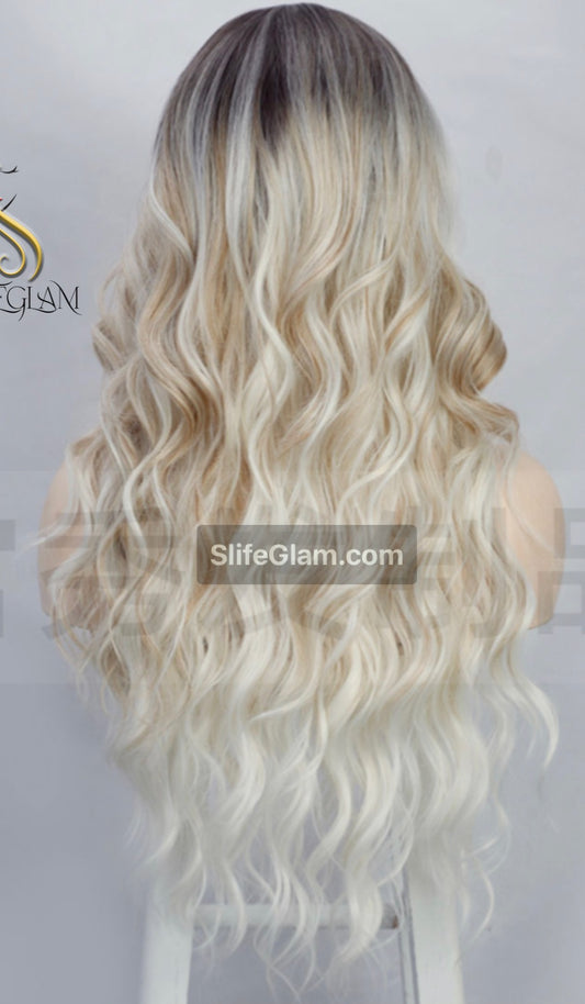 Lace Front T Part Blonde Ombré Long Wavy Wig