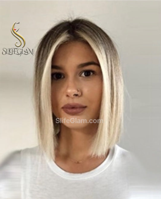 Beautiful Short Straight Shoulder Length Blonde Lace Front Platinum Blonde Bleached Blonde Wig