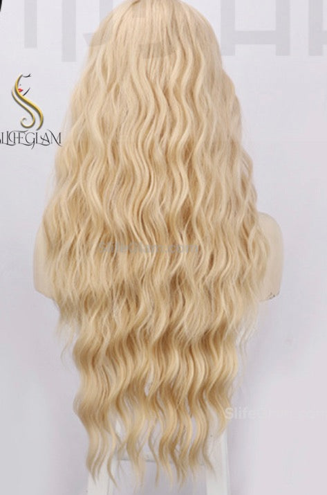 Beautiful Realistic long Wavy Curly Blonde Wig Natural Realistic Long Curly Blonde Wig