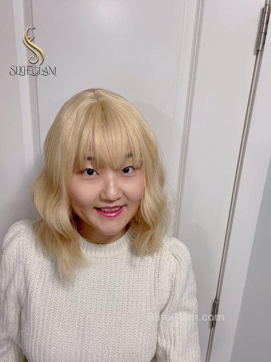 Realistic Short Wavy Blonde Wig Natural Realistic