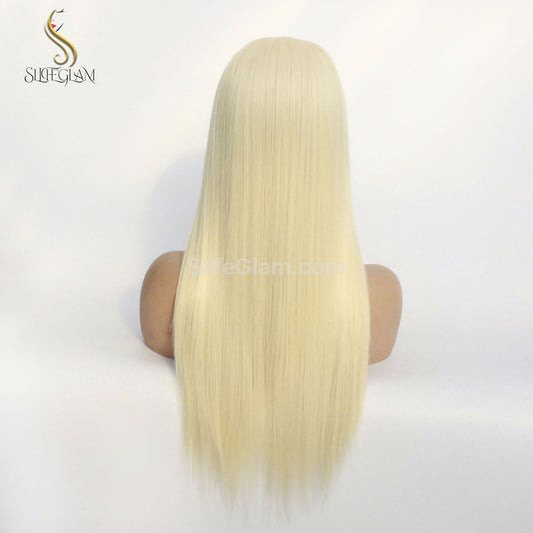 Beautiful Realistic Lace Front Straight Platinum Blonde Wig Natural Realistic