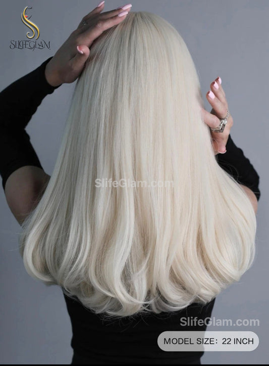 Beautiful Realistic long Wavy Straight Blonde Wig Natural Realistic Platinum Blonde