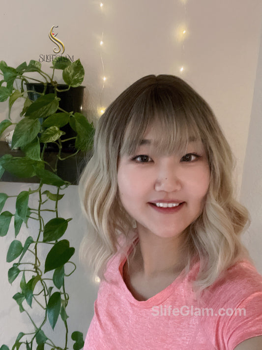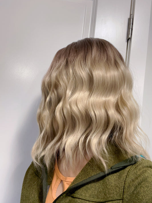 Realistic Shoulder Length Wavy Ombré Brown to Blonde Wig