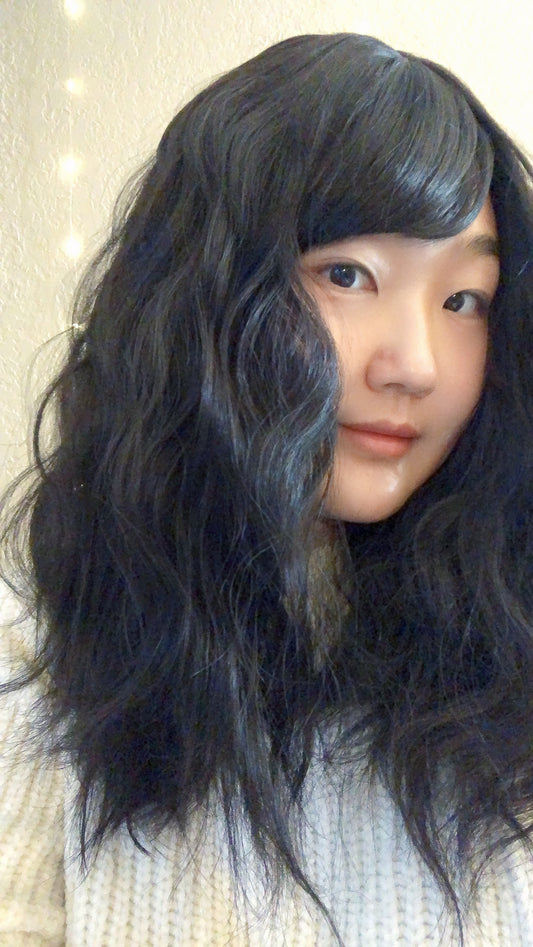 Realistic Shoulder Length Wavy Black Wig Long Black Wig Clearance
