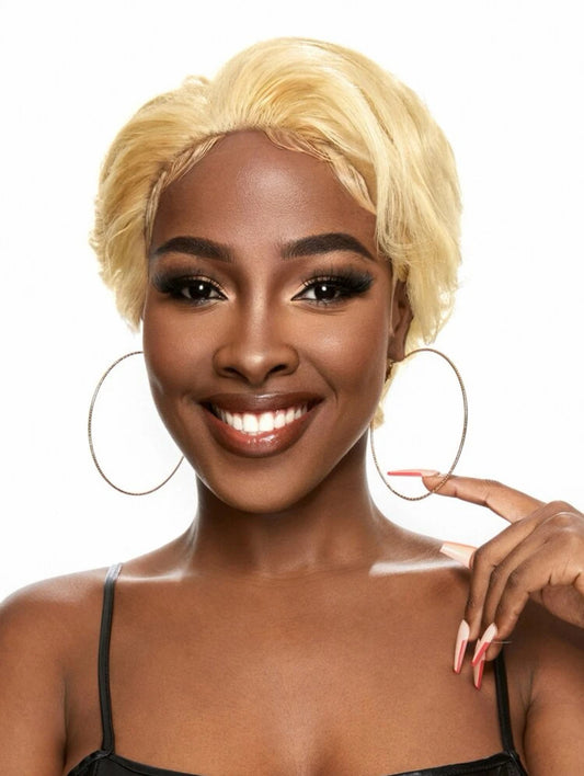 100% Human Hair Short Blonde Ombre Pixie Cut Wig