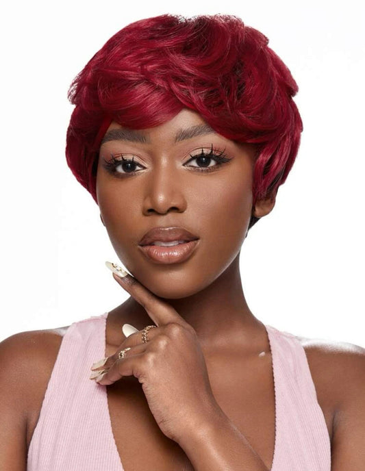 Pixie Cut Ombré Wig Body Wave Bangs Wig 1B Wine Red/Blonde Color 6 Inch Short Human Hair Wig Ombre Color