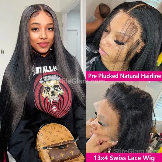 SlifeGLAM Long Straight Human Hair Wig Black Human Hair Wigs Pre Plucked Straight Middle Part Lace Wigs Long Lace Front Side Part Mid Part