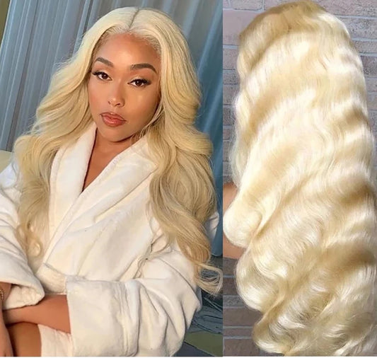 SlifeGlam Human Hair Platinum Blonde Body Wave 613 Lace Front Wig Remy Human Hair Beautiful Healthy Soft Shiny Human Hair Wig Frontal Wig